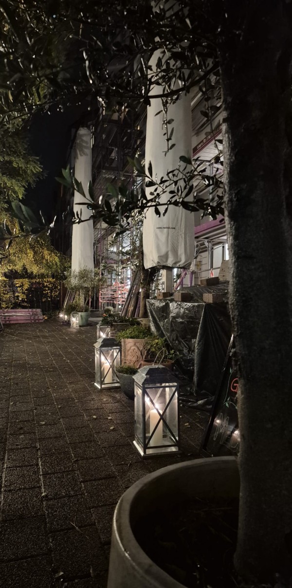 das Gerüst vor dem Medea steht kurz vor der Vollendung – bald wird alles wieder ordentlich aussehen,